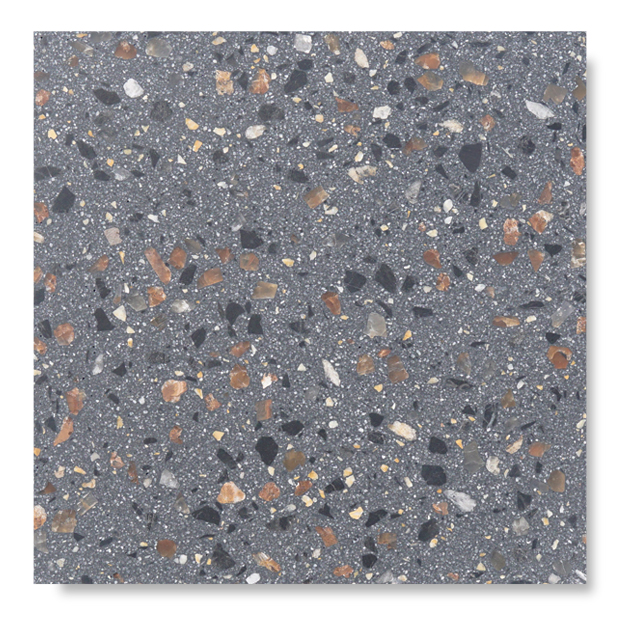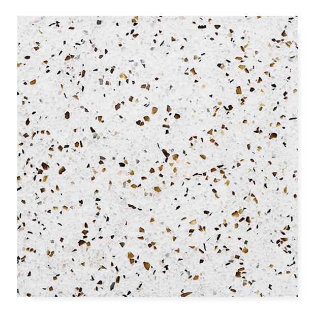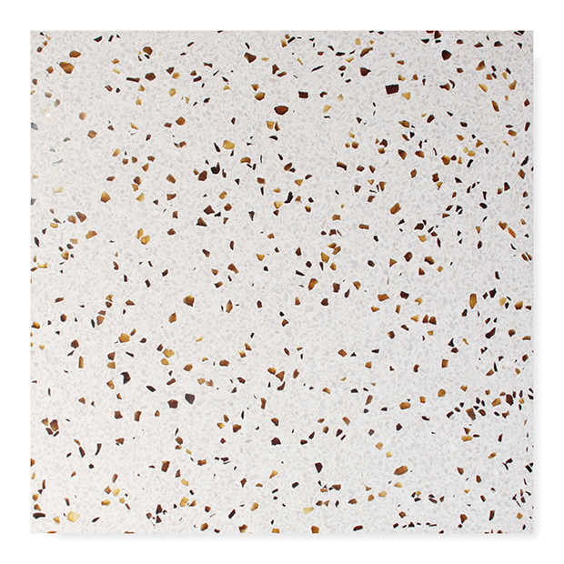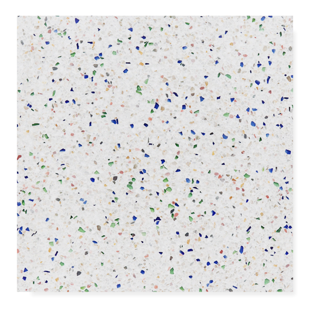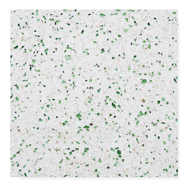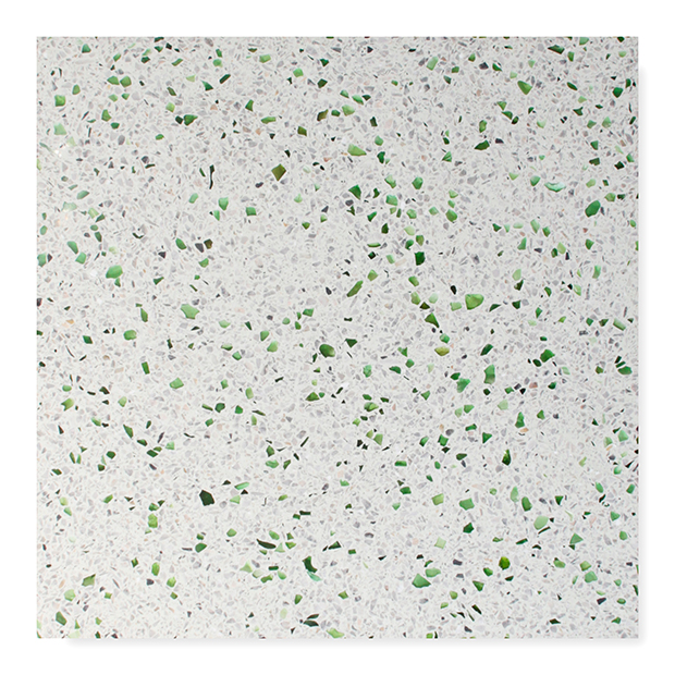 テラゾ製のエコタイルは、環境に優しく美しいタイルです。製品の原料は不用になったガラス瓶などを粉砕して活用しています。微妙に異なるガラスの表情が多彩で、これからの都市づくりに期待されるテラゾタイルです。