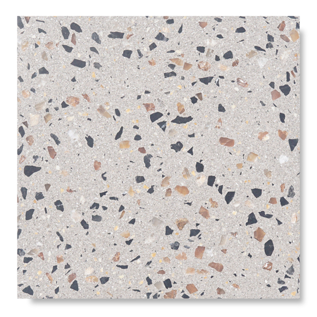 テラゾは天然石の風合いと光沢をもち、耐摩耗性・耐衝撃性・耐水性にも優れた床・壁材です。仕上げ加工された表面は汚れがつきにくく清潔感にあふれ、いつまでも美しさや新しさを保てます。都会的でモダンな空間によくマッチし、パブリックスペースはもちろん、店舗などの商業空間に用いても個性的な魅力を発揮します。※基本配合品の色調整も可能です。お気軽にお問い合わせください。